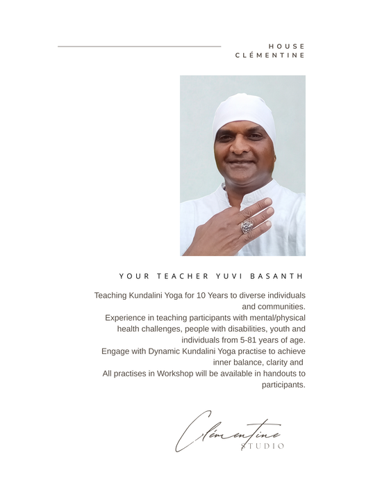 The workshop will be a unique and immersive experience, building one’s energy and inner strength while focusing on the Body, Mind, Soul, and Spirit. Participants will be guided through a dynamic yet accessible Kundalini Yoga practice designed to cultivate balance, clarity, and renewed vitality.