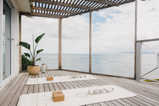 An outdoor deck overlooks the Walker Bay Nature Reserve and the ocean, allowing nature to become part of your experience.